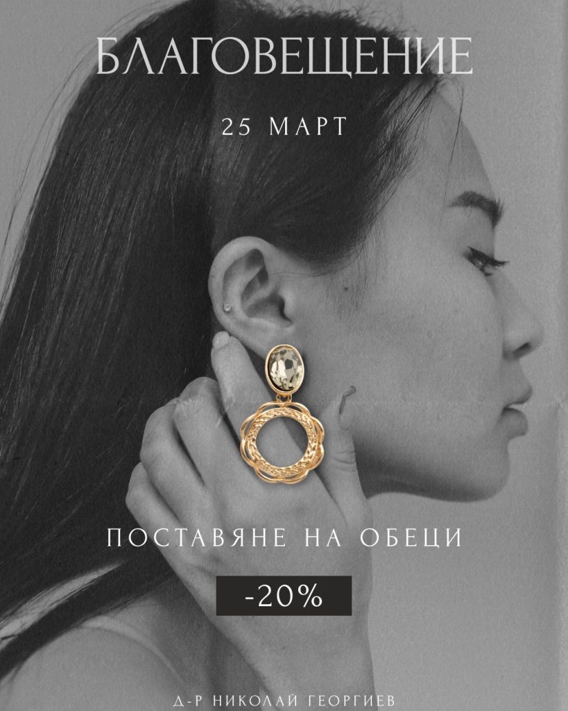 Възползвайте се от -20% отстъпка за пробиване на уши само на Благовещение!